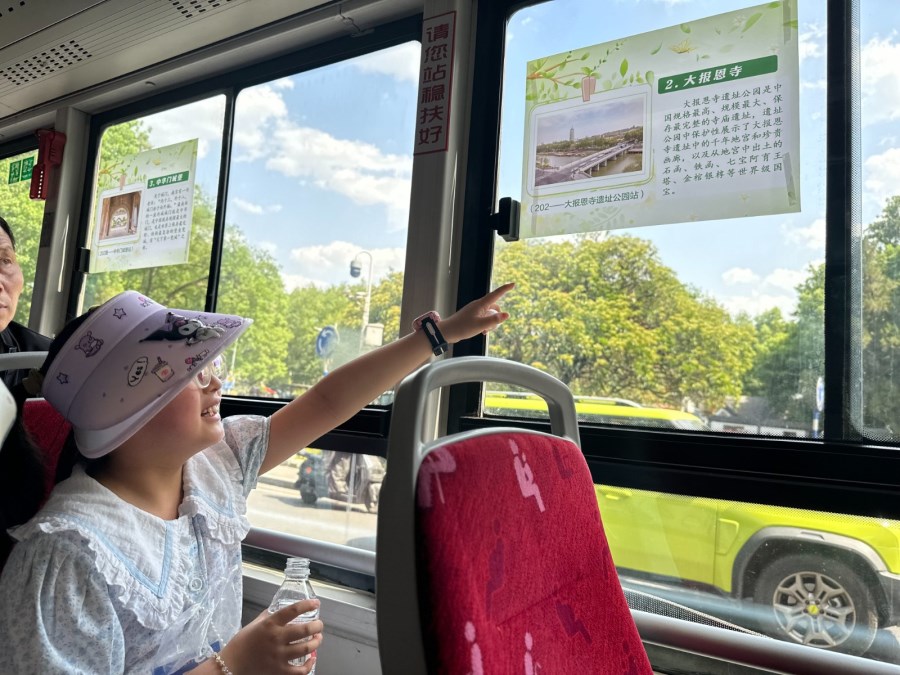 “202路途經(jīng)雨花臺、大報恩寺、老門東、夫子廟、瞻園、靈谷寺等眾多歷史文化景點,我們制作了公交線路途經(jīng)景點的宣傳畫和易拉寶,希望可以更好地宣傳南京城市形象,促進(jìn)文化傳播?!逼囁年牳睍涥愌帏Q介紹到。