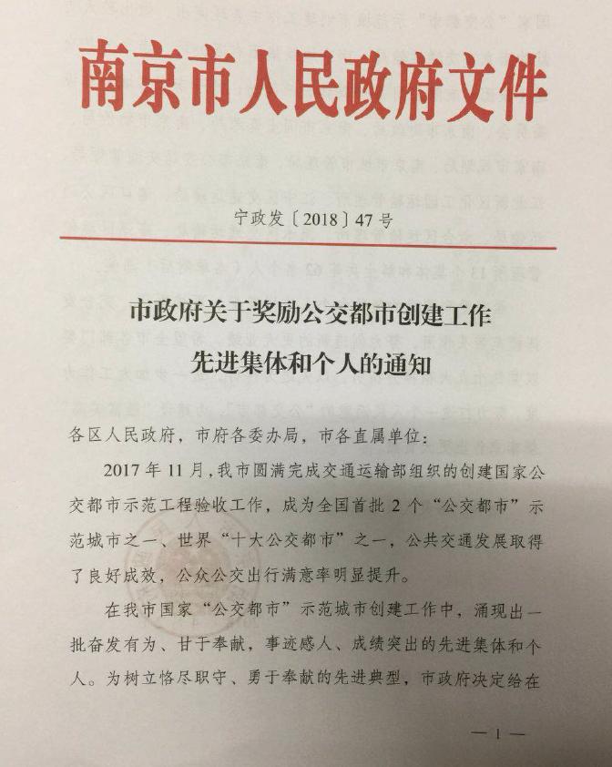 近年來,公交集團(tuán)在市委市政府“公交優(yōu)先”政策的引領(lǐng)及市交通運(yùn)輸局、城建集團(tuán)的領(lǐng)導(dǎo)下,根據(jù)《南京市創(chuàng)建國家“公交都市”示范城市實(shí)施方案》的要求,在線網(wǎng)優(yōu)化、場站建設(shè)、安全服務(wù)等方面均實(shí)現(xiàn)了一定的突破,實(shí)現(xiàn)了公交出行保障更有力、服務(wù)更優(yōu)質(zhì)、設(shè)施更完善、運(yùn)營更安全、管理更規(guī)范的發(fā)展目標(biāo),助力南京成功獲得“國家公交都市”稱號(hào)。